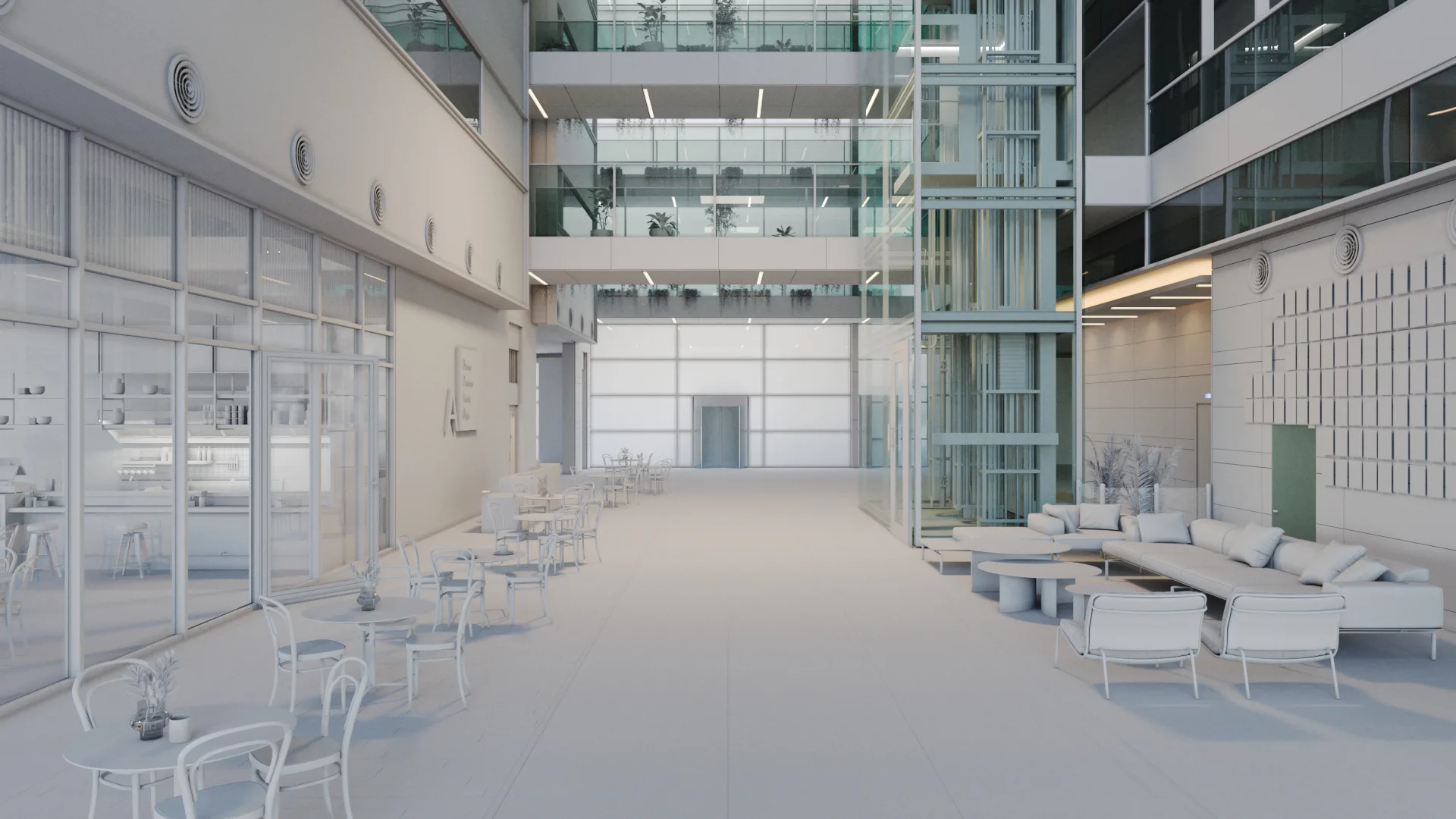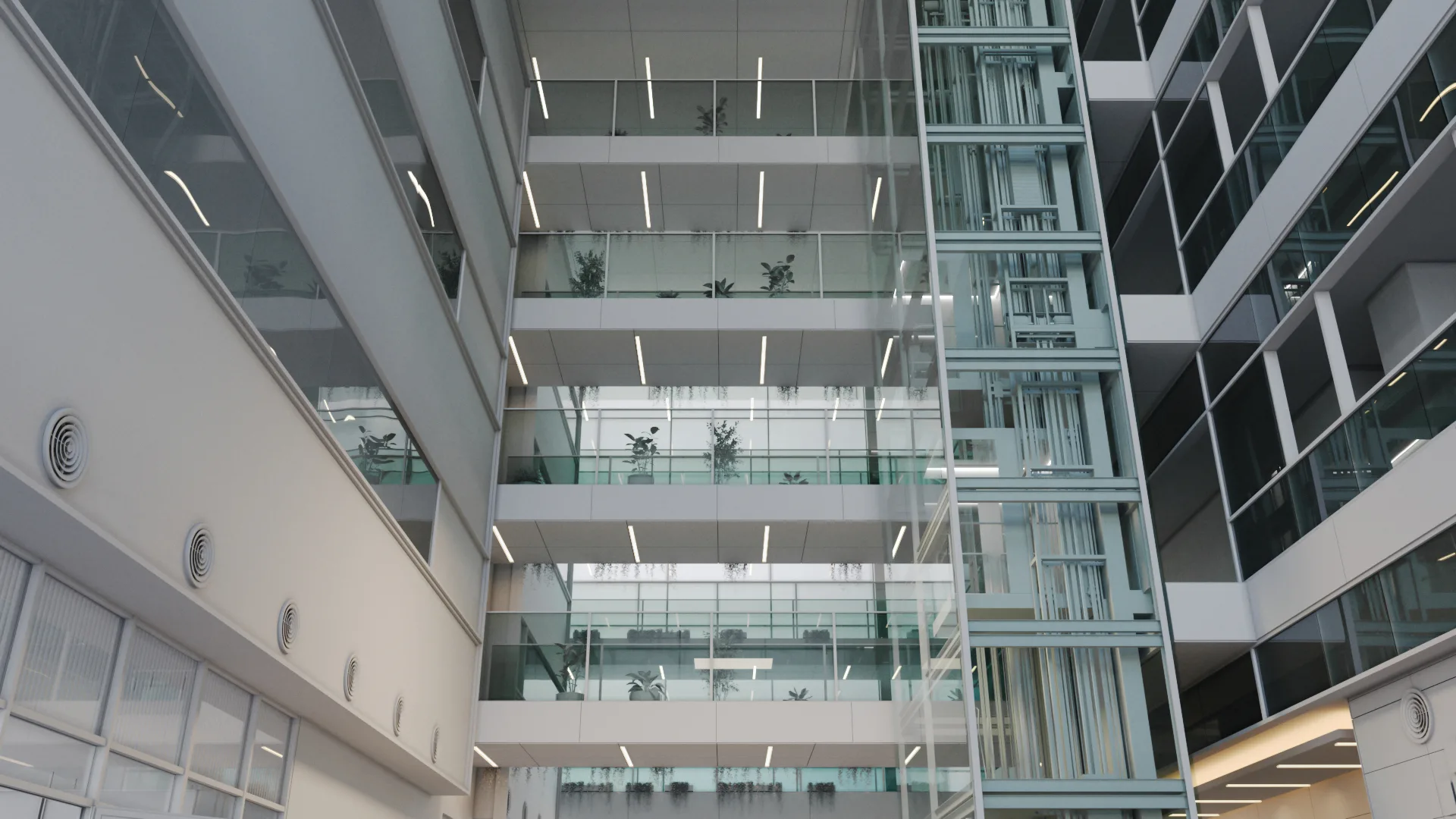Material setup focused on realism. Glass, metal, concrete, and natural finishes were configured to respond accurately to light and movement, which is essential for building animation. We then developed a daylight lighting setup with soft shadows to achieve a consistent, natural look across all scenes.