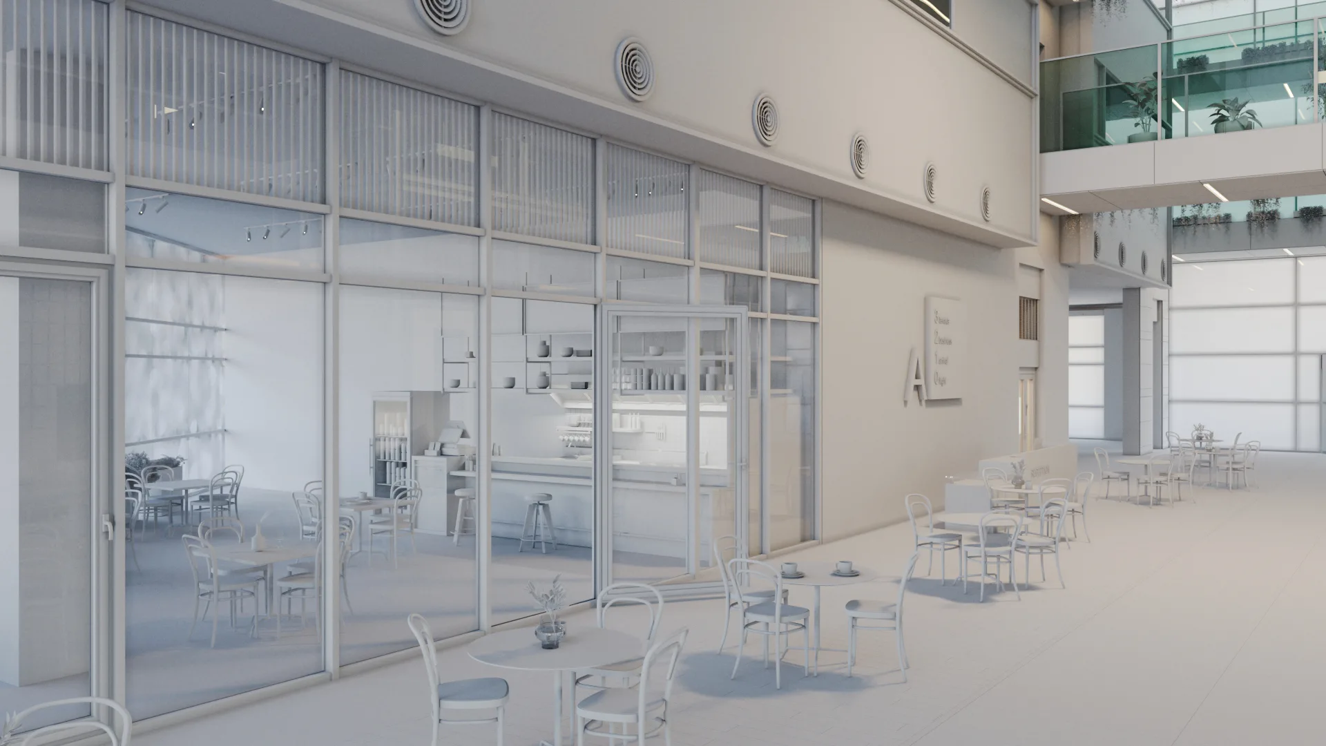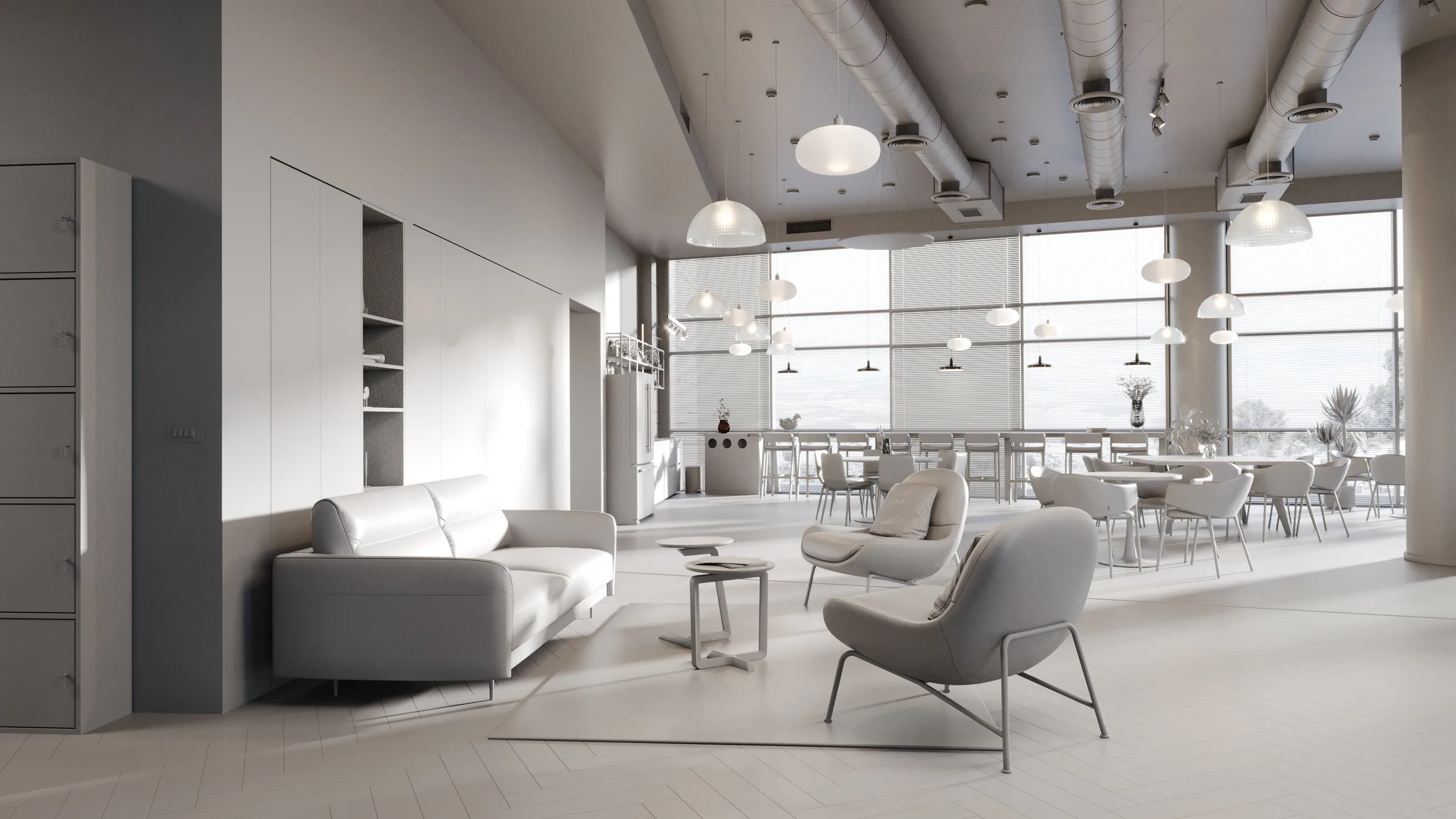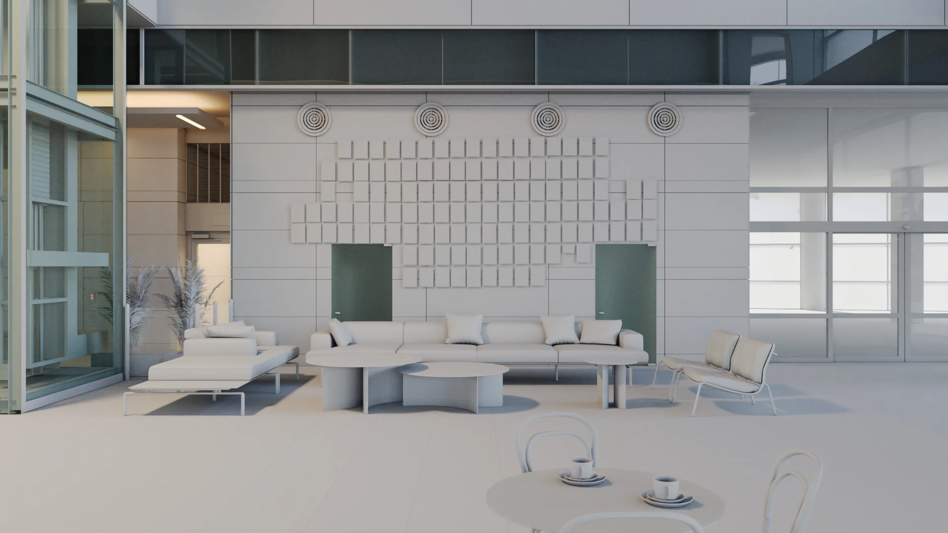 We received the source model in SketchUp format and rebuilt it into a high-poly scene suitable for detailed architectural visualization. This step allowed us to refine geometry while preserving the original design intent. Given the scale of the project, we also optimized the scene to handle a large volume of geometry without sacrificing detail or performance.